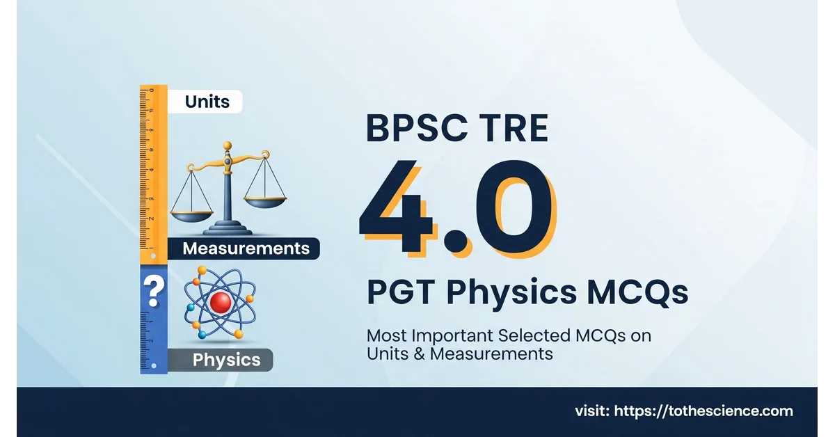 BPSC TRE 4.0 PGT Physics 2026 में इस chapter को strong करने का सबसे अच्छा तरीका है: पहले formulas समझिए, फिर dimensions derive कीजिए, उसके बाद MCQs practice कीजिए. Units & Measurements छोटा chapter है, लेकिन सही तैयारी के साथ यह exam में quick marks दिला सकता है.