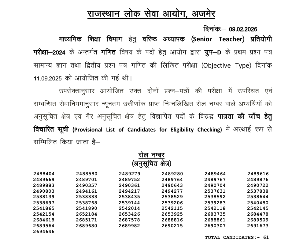RPSC TGT Math Result 2026: Great news for Rajasthan teacher aspirants! The Rajasthan Public Service Commission (RPSC) has officially declared the Senior Teacher Grade II (Secondary Education) Competitive Exam Result for Mathematics.